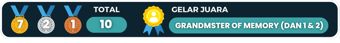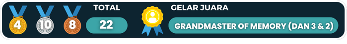 Indonesia berhasil meraih juara 2 Overall Country di Asia Open Memory Championship 2023. Kompetisi yang Dihadiri total 114 peserta dari 7 negara ini dilaksanakan pada tanggal 28-29 Oktober 2024, di De Lasalle University, Manila, Filipina. Tim Indonesia menerjunkan 25 pelajar dalam tiga kategori usia, yaitu Adult, Junior, dan Kids. Indonesia berhasil unggul dari peserta dari negara lain, seperti Jepang, Australia, China, bahkan tuan rumah Filipina di ajang Internasional ini. Namun, Indonesia harus mengakui keunggulan Tim Memory Sports Mongolia yang kembali berhasil menjadi Overall Champion di ajang kali ini. Meski begitu dari Tim Indonesia tetap mencetak prestasi baru dengan Hasna Widyaningrum yang berhasil membawa pulang 1 Medali Emas, Aulia Nadia A. membawa 1 Medali Perak, dan Faiza Aliyya R. meraih 1 Medali Perunggu, lho!